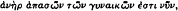Longò, O., Commento linguistico (Padua, 1968),Google Scholar quotes for the ‘exceptional’ άνήρ ‘amante’ Theoc.l5. 131, where Adonis is the άνήρ of Cypris, but there is nothing to show that in such a case the poet would differentiate between ‘husband’ and ‘lover’, any more than would man if it were standard English; also Pherecr. 155: