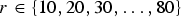 $r \in \{10, 20, 30, \ldots, 80\}$
