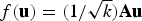 $f({\bf u})= ({1}/{\sqrt{k})} {\bf Au}$