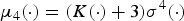 $\mu_{4}(\cdot) = ({K}(\cdot)+3) \sigma^{4}(\cdot)$, and letting this into (3) we further have