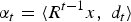 $\alpha_{t}=\langle R^{t-1}x\comma \; d_{t}\rangle$