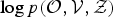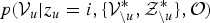 $$\eqalign{p({\cal O}, {\cal V}_{u}, \lcub {\cal V}_{\backslash u},{\cal Z}_{\backslash u}\rcub ) &= p({\cal O_{\backslash u}, {\cal V}_{\backslash u}, {\cal Z}_{\backslash u})} \sum_{z_u} p({\cal O}_{u},{\cal V}_{u}, z_{u}) \cr &\propto p({\cal O}_{\backslash u}, {\cal V}_{\backslash u}, {\cal Z}_{\backslash u}),}$$