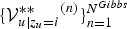 $$\eqalign{&\sum_{\forall{\cal V}_{u}} P\lpar z_{u} \vert \lcub {\cal V}_{\backslash u}^{\ast}, {\cal Z}_{\backslash u}^{\ast} \rcub , {\cal V}_{u}, {\cal O} \rpar P \lpar {\cal V}_{u} \vert \lcub {\cal V}_{\backslash u}^{\ast}, {\cal Z}_{\backslash u}^{\ast} \rcub , {\cal O} \rpar \cr & \quad \simeq {1 \over N^{Gibbs}} \sum_{n = 1}^{N^{Gibbs}} P\lpar z_{u} \vert {{\cal V}_{u}^{\ast \ast}}^{(n)}, \lcub {\cal V}_{\backslash u}^{\ast}, {\cal Z}_{\backslash u}^{\ast}\rcub , {\cal O}\rpar .}$$