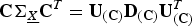 (10) $$\eqalign{{\bf C}{\bf \Sigma}_{\underline{X}}^{2} {\bf C}^{T} &= {\bf C}{\bf \Sigma}_{\underline{X}} {\bf PP}^T {\bf \Sigma}_{\underline{X}} {\bf C}^{T} = {\bf U}_{\lpar {\bf C}\rpar } {\bf D}_{\lpar {\bf C}\rpar }^2 {\bf U}_{\lpar {\bf C}\rpar }^{T}\cr &\quad + {\bf C} {\bf \Sigma}_{\underline{X}} \bar{{\bf C}}^{T} \bar{{\bf C}} {\bf \Sigma}_{\underline{X}} {\bf C}^{T}}$$