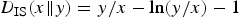 $D_{\rm IS} (x \Vert y) = y/x-\ln (y/x)-1$