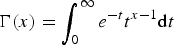 $\Gamma(x) = \int^{\infty}_{0} e^{-t}t^{x-1} \hbox{d}t$