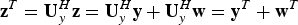 ${\bf z}^{T} = {\bf U}_{y}^{H} {\bf z} = {\bf U}_{y}^{H} {\bf y} + {\bf U}_{y}^{H} {\bf w} = {\bf y}^{T} + {\bf w}^{T}$