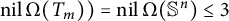 $$ \begin{align*} \mathrm{nil}\,\Omega(\mathbb{S}^m) = \left\{\begin{array}{ll} 2&\text{for odd } m \text{ and } m\not=1,3,7 \text{ or } m = 2;\\ 3&\text{for even } m\ge 4. \end{array}\right. \end{align*} $$