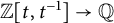 $\mathbb {Z}[t,t^{-1}]\to \mathbb {Q}$