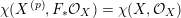 $$\begin{eqnarray}\unicode[STIX]{x1D712}(Y,\unicode[STIX]{x1D700})=\unicode[STIX]{x1D712}(X^{(p)},i_{\ast }\unicode[STIX]{x1D700})=\unicode[STIX]{x1D712}(X^{(p)},F_{\ast }{\mathcal{O}}_{X})-p^{d}\unicode[STIX]{x1D712}(X^{(p)},{\mathcal{O}}_{X^{(p)}})=(1-p^{d})\unicode[STIX]{x1D712}(X,{\mathcal{O}}_{X}).\end{eqnarray}$$