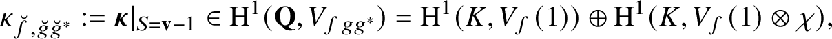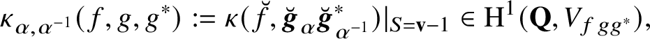 $$ \begin{align*} \kappa_{\gamma,\delta}(f,g,h)\in\textrm{H}^{1}(\mathbf{Q},V_{fgh}),\nonumber \end{align*} $$
