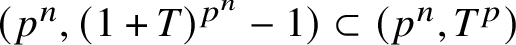 $(p^{n},(1+T)^{p^{n}}-1)\subset (p^{n},T^{p})$
