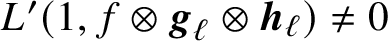 $L(1,f\otimes {\boldsymbol {g}}_{\ell }\otimes {\boldsymbol {h}}_{\ell })=0$