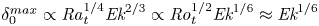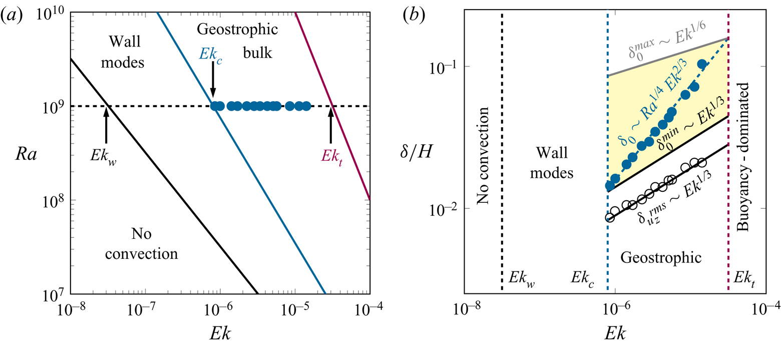 $\delta _0^{max} \propto {Ra}_t^{1/4}{\textit {Ek}}^{2/3} \propto {Ro}_t^{1/2}{\textit {Ek}}^{1/6} \approx {\textit {Ek}}^{1/6}$). (The value