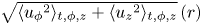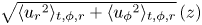 $\sqrt {\langle {u_r}^2\rangle _{t, \phi , r}+\langle {u_\phi }^2\rangle _{t, \phi , r}}\,(z)$ and