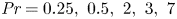 ${Pr}$ varies from 0.7 to 0.9 and in the DNS