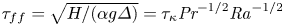$\tau _{ff} = \sqrt {H/ (\alpha g \varDelta )}$).