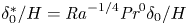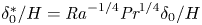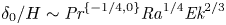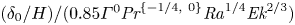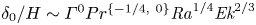 $\delta _0/H \sim \varGamma ^{0} Pr^{\{-1/4,\ 0\}} {Ra}^{1/4} {\textit {Ek}}^{2/3}$ (that is,