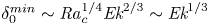 $\delta _0^{min} \sim {Ra}_c^{1/4}{\textit {Ek}}^{2/3} \sim {\textit {Ek}}^{1/3}$ (see