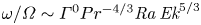 $\omega /\varOmega \sim \varGamma ^{0} Pr^{-4/3} {Ra}\,{\textit {Ek}}^{5/3}$, indicating that the drift frequency decreases significantly as