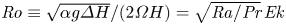 ${Ro} \equiv {\sqrt {\alpha g\varDelta H}}/({2 \varOmega H}) = \sqrt {{Ra}/{\textit {Pr}}} \,{\textit {Ek}}$ is another important non-dimensional parameter that provides a measure of the balance between buoyancy and rotation and is independent of dissipation coefficients.