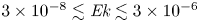 $\sim {\textit {Ek}}^{1/3}$) and the range confined in between gets broader for higher