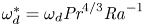 $\omega _d^* = \omega _d {\textit {Pr}}^{4/3} {Ra}^{-1}$. (For