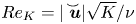 where  $R{e_K} = |\boldsymbol{\overset{\lower0.5em\hbox{$\smash{\scriptscriptstyle\smile}$}}{u}}|\sqrt K /\nu $ and