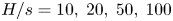 $H/s = 100$,  $s/d = 1.5\ (\phi = 0.56)$,