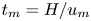 ${u_m} = \beta \Delta cgK/\nu $, length  $H$ and time