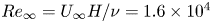 ${Re}_\infty = U_\infty H / \nu = 1.6 \times 10^4$ (