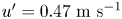 $u'=0.47 \ \mathrm {m}\ \mathrm {s}^{{-1}}$, the mean dissipation rate was estimated as