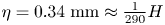 $\eta = 0.34 \ \mathrm {mm} \approx \frac {1}{290}H$ and the Taylor microscale Reynolds number was