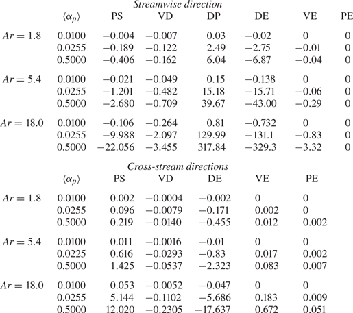 $\tau _{\eta }=\sqrt {\nu _f/\varepsilon _f}$ the Kolmogorov time scale. The values of these quantities for all nine cases are reported in table 2. It can be seen that high volume fractions correspond to larger Stokes numbers and lower values of
