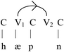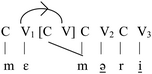Let us now see how the data in (1) can be analysed in this approach. The representation of stressed vowels (underlined) preceding a single intervocalic consonant, i.e. in a word-internal ‘open syllable’, is shown in (10).