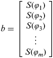 $$b = \left[ {\matrix{ {S(\varphi _1 )} \cr {S(\varphi _2 )} \cr {S(\varphi _3 )} \cr {\matrix{ \vdots \cr {S(\varphi _m )} \cr}} \cr}} \right]$are the values of Equation (5) up to M 20 terms and 20 powers of e.