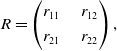 \begin{equation}R=\begin{pmatrix}r_{11} & \quad r_{12} \\[3pt] r_{21} &\quad r_{22}\end{pmatrix},\end{equation}