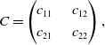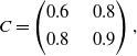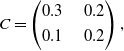 \begin{equation}C=\begin{pmatrix} 0.3 & \quad 0.2 \\[3pt] 0.1 & \quad 0.2 \end{pmatrix},\end{equation}