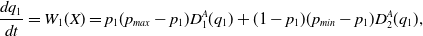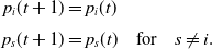 stands for the probability of adopting strategy 2. Thus, P(t) describes the distribution over the strategies of player A. Similarly, we can define the mixed strategy of player B at time t as