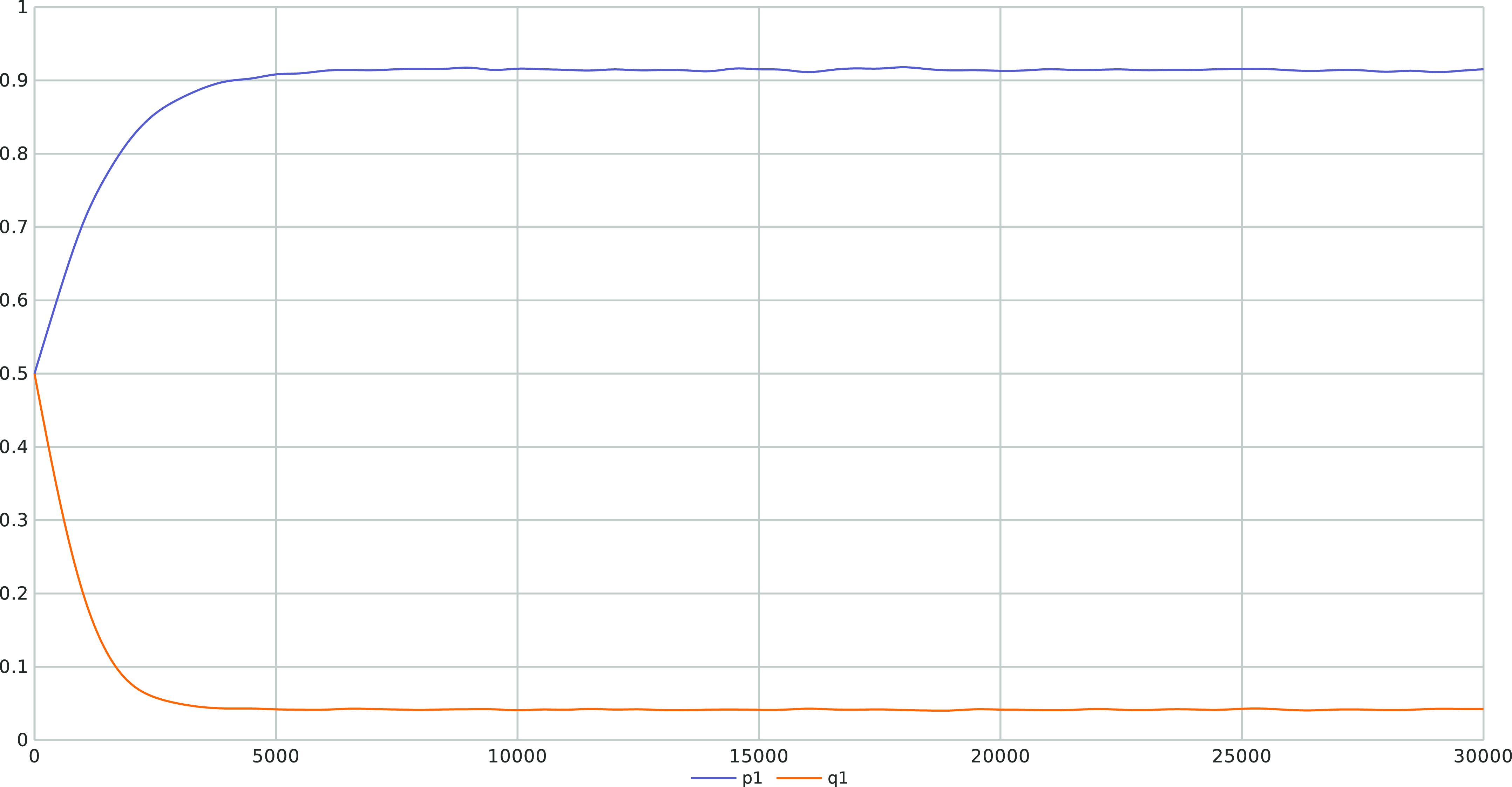 $(p^*,q^*)=(0.99699397,0.99699397)$