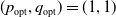 $(p_{\mathrm{opt}},q_{\mathrm{opt}})=(1,1)$