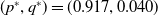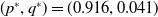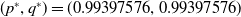 $(p^*,q^*)=(0.99094517,0.99094517)$