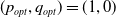 $(p_{\mathrm{opt}},q_{\mathrm{opt}})=(0,0)$