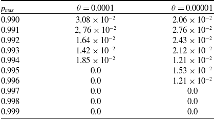 , w our scheme is in theory ergodic and not absorbing, this is not the case in practice as shown in the simulation reported in Table 3. In fact for