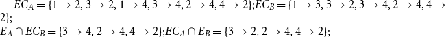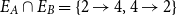 l $E_A=\{ 1\rightarrow2, 2\rightarrow4, 4\rightarrow2, 3\rightarrow4 \}; E_B=\{ 1\rightarrow3, 3\rightarrow2, 2\rightarrow4, 4\rightarrow2 \}$; $E_A \cap E_B = \{ 2\rightarrow4, 4\rightarrow2\}$