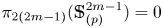 then $\pi _{2(2m-1)}(\mathbb {S}^{2m-1}_{(p)})=0$