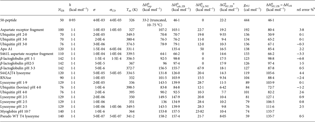 Table 3. Differential scanning calorimetry of protein unfolding analysed with the Zimm–Bragg theory