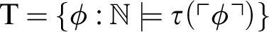 A relation $X \subseteq M^n$ is $\Gamma $ -definable in $\mathcal {M}$ (with parameters) iff there is a tuple $\overline {b}\in M$ and a formula $\phi (x_1,\dots ,x_n, \overline {y}) \in \Gamma $ such that $X = \{\langle m_1,\dots ,m_n \rangle \in M^n : \mathcal {M} \models \phi (m_1,\dots ,m_n,\overline {b})\}$ . Whenever this terminology is used without specifying a model $\mathcal {M}$ , it is assumed that $\mathcal {M} = \mathbb {N}$ . Thus, in particular, a $\Gamma $ -definition of a theory $\mathrm {T}$ is a $\Gamma $ formula $\tau (x)$ such that $\mathrm {T} = \{ \phi : \mathbb {N} \models \tau (\ulcorner \phi \urcorner ) \}$ .