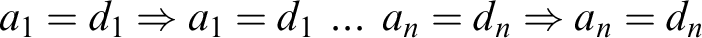 $a_1= d_1\Rightarrow a_1=d_1 \ \ldots \ a_n= d_n\Rightarrow a_n=d_n $
