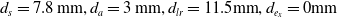 (12) \begin{align}a_1 &= x_e s\varphi_e -y_e c\varphi_e - b_1 s\varphi_e + b_2 c\varphi_e, \nonumber\\[2pt] a_2 & = d_a^2-\left(\!-x_e c\varphi_e - y_e s\varphi_e + b_1 c\varphi_e + b_2 s\varphi_e\right)^2,\nonumber\\[2pt] a_3 &= x_e s\varphi_e -y_e c\varphi_e - b_3 s\varphi_e + b_4 c\varphi_e,\nonumber\\[2pt] a_4 & = d_a^2-\left(x_e c\varphi_e+y_e s\varphi_e-b_3 c\varphi_e+b_4 s\varphi_e\right)^2,\nonumber\\[2pt] b_1 &= \frac{d_{lr}}{2}-d_{e_y} s\varphi_e-\left(\frac{d_{s}}{2}-d_{e_x}\right) c\varphi_e, \\[2pt] b_2 &= d_{e_y} c\varphi_e-\left(\frac{d_{s}}{2}-d_{e_x}\right) s\varphi_e, \nonumber\\[2pt] b_3 &= -\frac{d_{lr}}{2}-d_{e_y} s\varphi_e+\left(\frac{d_{s}}{2}+d_{e_x}\right) c\varphi_e, \nonumber\\[2pt] b_4 &= d_{e_y} c\varphi_e+\left(\frac{d_{s}}{2}+d_{e_x}\right) s\varphi_e.\nonumber\end{align}